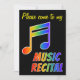 This fun, colorful music recital invitation design features a musical note symbol and the message "Please come to my MUSIC RECITAL". The music note and the words "MUSIC RECITAL" feature a rainbow spectrum gradient coloring pattern. The details on the back can be customized. An invitation like this might be used to invite guests to a musical recital.