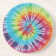 Photo of fabric dyed a bright, colorful rainbow spiral tie dye pattern.