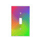 Here is a colorful light switch cover with an abstract spiral rainbow pattern swirling around a central target in colours of green, blue, yellow, orange and red. Could be used in the context of LGBT.
