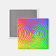 Here is a colorful magnet with an abstract spiral rainbow pattern swirling around a central target in colours of green, blue, yellow, orange and red. Could be used in the context of LGBT.