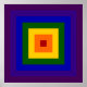 Show your love of color with a geometric rainbow. A series of red, orange, yellow, green, blue, indigo, and violet squares radiate out from the center of this festive design.