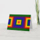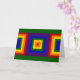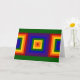 Show your love of color with alternating geometric rainbows. A series of red, orange, yellow, green, blue, indigo, and violet squares radiate out from the center of this festive design. On either side of the main square are halves of 2 rainbow squares with the colors sequenced in reverse order.