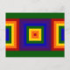 Show your love of color with alternating geometric rainbows. A series of red, orange, yellow, green, blue, indigo, and violet squares radiate out from the center of this festive design. On either side of the main square are halves of 2 rainbow squares with the colors sequenced in reverse order.