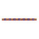 Show your love of color with alternating geometric rainbows. A series of red, orange, yellow, green, blue, indigo, and violet squares radiate out from the center of this festive design. On either side of the main square are halves of 2 rainbow squares with the colors sequenced in reverse order.