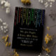 Informal LGBT wedding invitation with vertical star garlands in rainbow colors and gold foil against a dark background with a modern informal wedding wording and your names in a golden script.