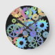 Rainbow steampunk metal gears art Round Clock