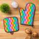 Rainbow Steps Blocks Pattern Oven Mitt & Pot Holder Set