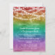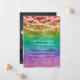 LGBT wedding reception invitation with a rainbow ombre background and string lights personalized with a wedding photo on the back. Pride post elopement celebration invitation with a rainbow-colored background and fairy lights. Charming lesbian post wedding ceremony celebration invitation with a rainbow theme.
