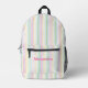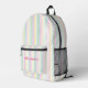 This cute and colorful design features a rainbow of pinstripes in yellow, green, teal, pink, orange and lavender. This cool design will sure to make this backpack stand out from the crowd. Personalize it with a name shown in pink in a clean and clear typography. Coordinating items available in my store.