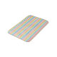 Stylish bath mat, done in a colorful blue, white, pink, yellow, aqua, and blue striped pattern. Customize it, to add any text you want. Comes in three sizes.