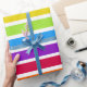 Bright Rainbow stripes are featured on this colorful wrapping paper.
