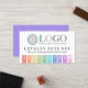 Loyalty pays off punch card printed with your logo and with rainbow stripes, a cute heart, and charming fonts. Add your business name and contact info on the other side in white on purple. A colorful and fun loyalty card with fields in rainbow colors from red to yellow to green to blue to purple to pink with a little heart and your logo. Loyalty card template you can personalize with logo, business name, and contact info.