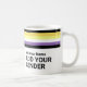 Rainbow Stripes LGBT Custom Name Pronouns Not binary flag Coffee Mug featuring personalized name, text, GENDER and pronouns. You can add your personalized text or delete it. A beautiful gift idea for family and friends, and a great tool to drink more water, stop plastic waste, help the planet and show your support to LGBT right, or just proudly show who you are.