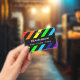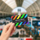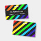A rainbow and black stripes pattern with space for a custom name and pronouns.