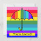 Plain white envelopes are included with paper invitations and will come to fit the invitation size you select. If you don’t need the envelopes, you may choose to not receive them by selecting the dropdown below "Envelopes" and choosing "None." If you’d like to have a design on your envelopes, you can browse all of these available envelopes to find the design that complements your Rainbow Stripes Umbrella Invitation.