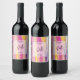 Personalized wine making bottle labels with an abstract background design. Vibrant stripes in both bold and pastel colors. Pinks, blues, purples and yellow colors combined with faux gold sparkly glitter layered over top.