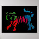 A colorful rainbow stripey tiger design with red, purple, green and blue original stencil art design by Zoe Tuong. The background is fully customizable to suit your decor. perfect for a kids room or to brighten up the house with a colorful art vibe.