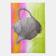 From an original illustration of a teapot drawing in graphite pencil against a rainbow multi-coloured pink, orange and green watercolour background. This delicate and arty hipster style piece is colourful and bright and reminds one of a tea party.