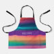 Great color and even though I ordered the kid size, it covers well enough to use during the holidays. I am not a big woman and prefer a shorter apron. I stand 5"6" and the length of the garment goes to mid-thigh. The tie straps fit well at my waist and even though there is no neck strap adjustment, the opening is plenty big enough. I am happy with the size and fit. I am sharing my apron with my 10 year old grandson, too! The color is vibrant and looks good, as shown on the website. The stitching looks strong and reinforced. Photographed is front side and back side of the apron, reinforced straps and coloring. My phone camera may not be the best at showing the details.