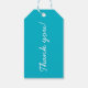 Deep rainbow colors pop against a teal background. "Thank you" is inscribed in contrasting white in a friendly font on the reverse side.