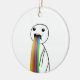 Lightweight, smooth, pure white ornament with nice sheen. Perfect size to be seen from across the room ... and to attract closer inspection! Price was great for ordering enough for the whole family! Clear, bold black design just as requested. Matches the order exactly. Just so nice!