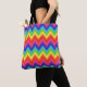 A bright rainbow pattern decorates this stylish tote bag. The design is from original art.