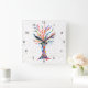 Rainbow Tree Gold Stars Square Wall Clock