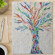 This decorative jigsaw puzzle features a print of a rainbow colored mosaic tree.