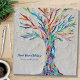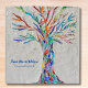 This decorative binder features a print of a rainbow colored tree on a pale gray background.