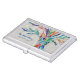 This decorative business card case features a print of a rainbow colored tree on a pale gray background.