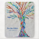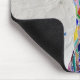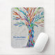This decorative mouse pad features a print of a rainbow colored tree on a pale gray background.