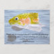 A wildlife art postcard with my coloured pencil drawing of a rainbow trout, with an animal rights quotation below it. The background is a river photograph. The quotation reads: “Anyone who has accustomed himself to regard the life of any living creature as worthless is in danger of arriving also at the idea of worthless human lives.” — Albert Schweitzer