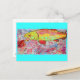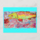 shows colourful rainbow trout chasing a fly! also with "wishing you happy fishing" slogan