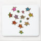 Mousepad is illustrated with multi-coloured rainbow turtles arranged in the shape of a heart.