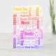 A straight to the point greeting card cover designed with this colorful rainbow typography multilingual Thank You word cloud in a variety of typeface styles. Fill in the template field with your message, remove all text for a blank inside or click customize to select a different typeface style, size, and color for the inside message.