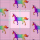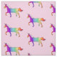 A fabric with a unicorn theme. A unicorn in rainbow colors.