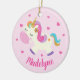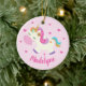 Rainbow Unicorn Glitter Christmas Pink Name Ceramic Ornament