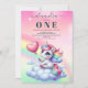 Rainbow Unicorn Gold Glitter 1st Birthday Invitation