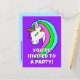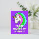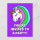 This fun party design features a bright background color and a happy rainbow mane unicorn. Personalize with your own name, age, and information!