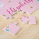 This personalized puzzle features a rainbow unicorn with stars and faux gold glitter. Personalize the text with a name.
