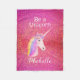 Rainbow Unicorn Pink Glitter Sparkles Personalized Fleece Blanket