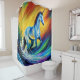 Rainbow unicorn shower curtain with custom design, sparkling details and mythical graphics.