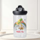 Rainbow Unicorn with Balloon Monogram Name Water Bottle
