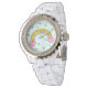 Add a touch of whimsy to your wardrobe with our **Rhinestone White Enamel Watch**. This enchanting timepiece features a delicate rainbow design on the face, with pink hearts at each end and little stars scattered around it, all set against a serene light blue background. The sparkling rhinestones on the bezel add a luxurious touch, making this watch both playful and elegant. Perfect for any occasion, this watch effortlessly combines charm and sophistication. The white enamel band ensures a comfortable fit, while the colorful design brings a cheerful and uplifting vibe to your day. Let this delightful watch be a reminder to always look for the rainbow after the rain.