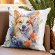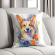 Rainbow Watercolor Corgi Personalized Throw Pillow