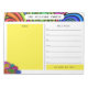 Colorful rainbow doodles with yellow accents bring a cheery vibe to your home or office, and five areas allow you to customize your weekly family calendar notepad to best fit your family's needs. Suggested areas include a title area for your family name, a notes/don't forget section, a title for the daily section like "this week," and a bottom spot for a family motto, mantra, or other special saying. The fifth area includes titles and lines for seven days of the week, and customization allows you to label the days of the week in the order you prefer (eg. starting on Sunday or Monday).