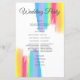 Beautiful rainbow watercolor wedding program with pretty, artistic paint strokes full of bright color for an LGBTQ event. Elegant script and colorful edges to bring happiness to your union.