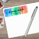 Modern personalized return address label design featuring a rainbow colored watercolor background with your name written in a fancy script. The text is fully customizable.