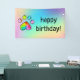 Rainbow Watercolor Paw Print Birthday Party Banner