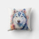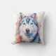 Rainbow Watercolor Siberian Husky Personalized Throw Pillow